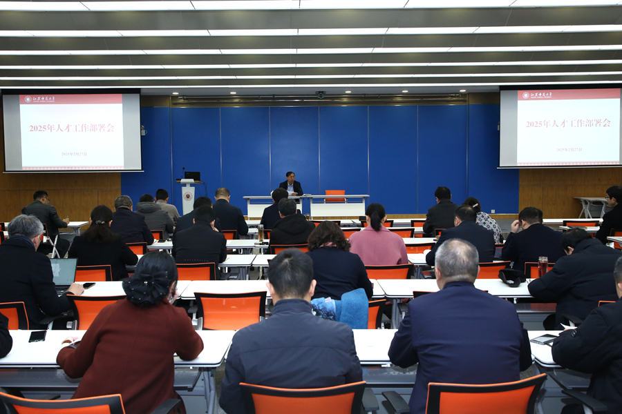 2月27日上午,學校召開2025年人才工作部署會議,加快推動學校人才高地建設。校長杜增吉出席并主持會議,各專業學院黨委書記、院長參會。