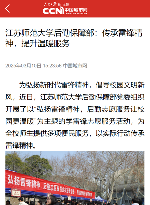 江蘇師范大學后勤保障部:傳承雷鋒精神,提升溫暖服務