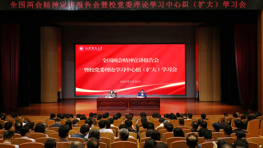 3月26日下午,我校舉辦學習貫徹全國兩會精神宣講報告會暨校黨委理論學習中心組(擴大)學習會。會議邀請全國人大代表、徐州市云龍區委書記陳婕作全國兩會精神宣講報告,傳達學習習近平總書記在全國兩會期間的重要講話精神和全國兩會精神;邀請江蘇省人民政府原參事、南通大學原黨委書記成長春作專題報告,解讀《教育強國建設規劃綱要(2024-2035年)》。在校全體校領導、中層干部、校院兩級黨委理論學習中心組全體成員,全體思政課教師,全體輔導員和學生代表聆聽了報告。
