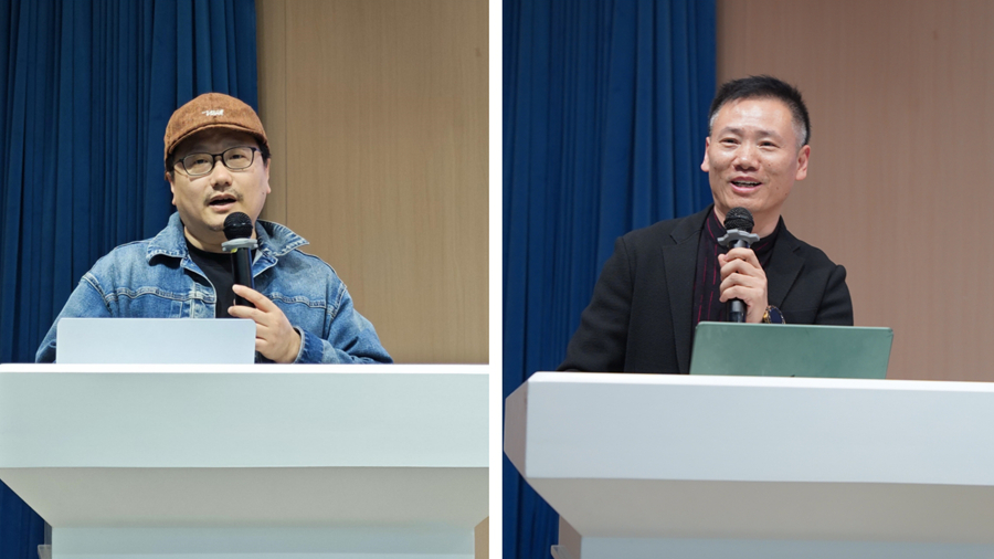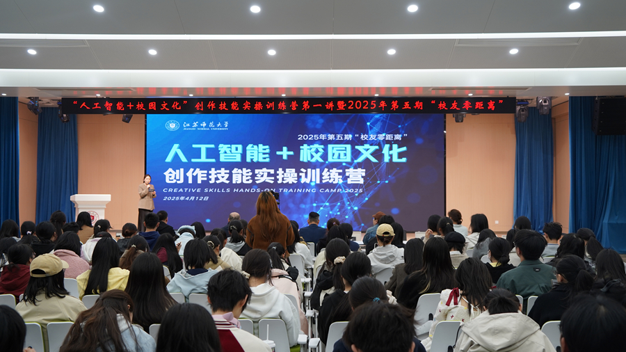 4月12日下午,2025年第五期“校友零距離”暨“人工智能+校園文化”創(chuàng)作技能實(shí)操訓(xùn)練營(yíng)第一講在泉山校區(qū)路演大廳舉行。我校1999級(jí)市場(chǎng)營(yíng)銷專業(yè)校友、南京藝術(shù)學(xué)院教師彭奇奇,1999級(jí)美術(shù)學(xué)專業(yè)校友、南京新數(shù)質(zhì)寧盟科技有限公司創(chuàng)始人宋高峰受邀重回母校,圍繞AI創(chuàng)作與在場(chǎng)師生深入交流。