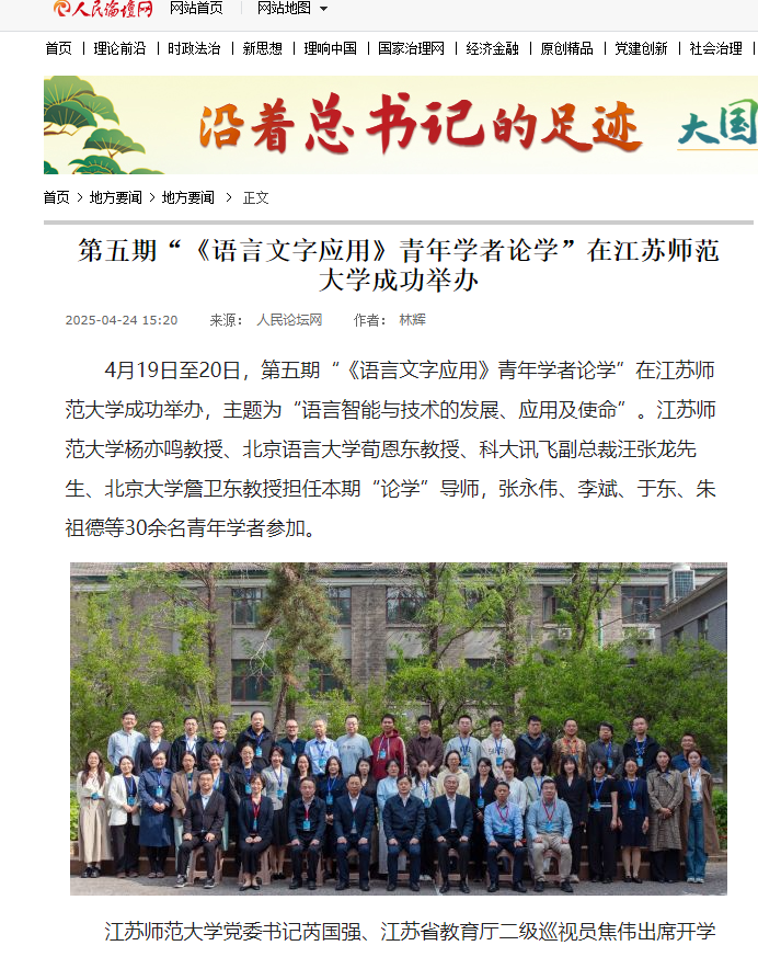 人民論壇網(wǎng)4月24日報道在我校舉行的第五期“《語言文字應用》青年學者論學”,報道內容如下: