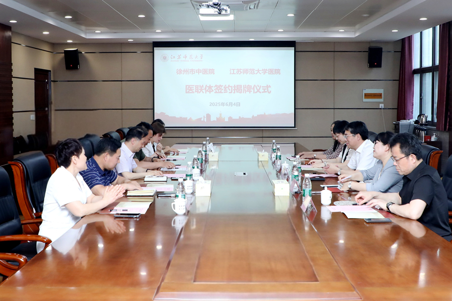6月4日下午,徐州市中醫院與江蘇師范大學醫院醫聯體簽約揭牌儀式在我校舉行。徐州市中醫院黨委副書記、院長牛勇,院辦公室主任吳敏,對外聯絡部主任朱曙光及醫務處、護理部等相關科室負責人出席活動。校黨委常委、副校長張其飛出席儀式,校長辦公室、后勤保障部負責人參加活動,活動由校衛健辦主任張輝主持。