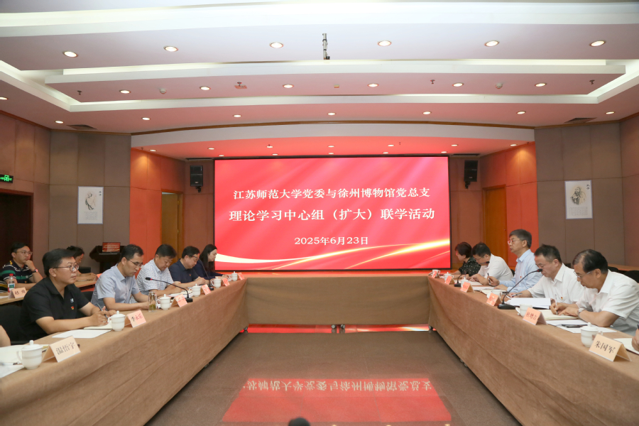 6月23日下午,我校與徐州博物館開展黨委(黨總支)理論學(xué)習(xí)中心組(擴(kuò)大)聯(lián)學(xué)活動(dòng)。校黨委理論學(xué)習(xí)中心組全體成員,徐州博物館黨總支成員,我校有關(guān)部門和學(xué)院主要負(fù)責(zé)同志、徐州博物館有關(guān)同志參加學(xué)習(xí)。校黨委書記芮國(guó)強(qiáng)主持聯(lián)學(xué)活動(dòng)。