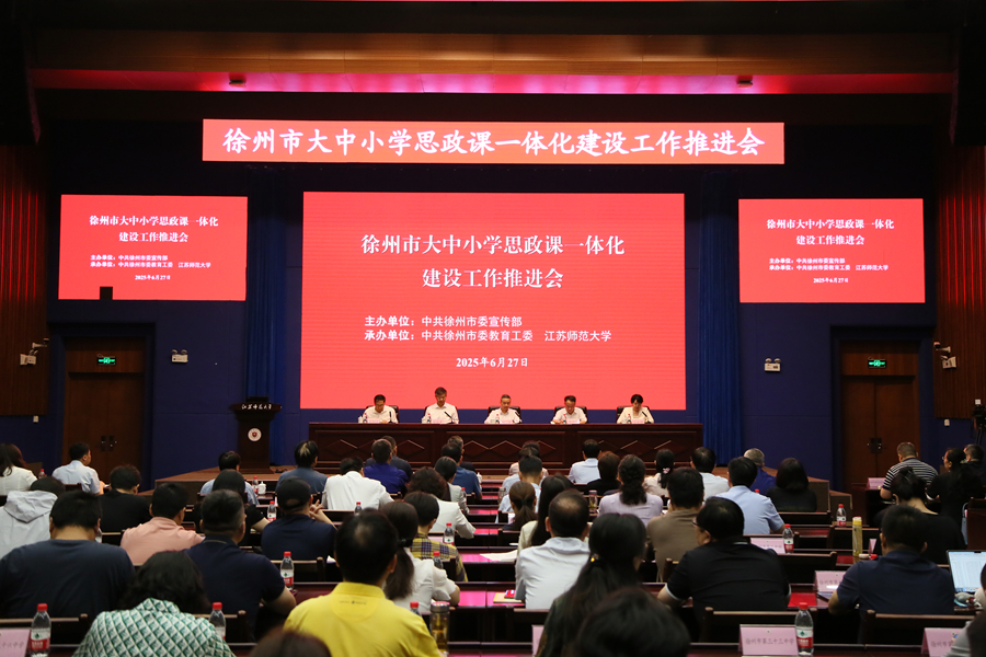 6月27日上午,徐州市大中小學思政課一體化建設工作推進會在江蘇師范大學舉行。徐州市委常委、宣傳部部長劉偉,江蘇師范大學黨委書記芮國強,江蘇師范大學黨委副書記蔡國春,徐州市委教育工委書記、教育局局長孫云靜,徐州市委宣傳部副部長竇銅順出席會議,徐州各縣區(qū)教育局負責人,在徐高校黨委宣傳部部長、馬克思主義學院院長,徐州市各縣區(qū)中小學校思政教師代表參加會議。