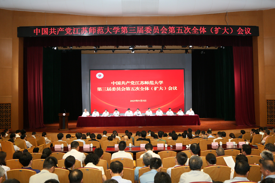 9月5日,中國共產黨江蘇師范大學第三屆委員會第五次全體(擴大)會議召開。校領導班子成員,黨委委員、紀委委員,中層干部,市級及以上黨代表、人大代表、政協委員,校學術委員會委員,各民主黨派主要負責人參加會議。