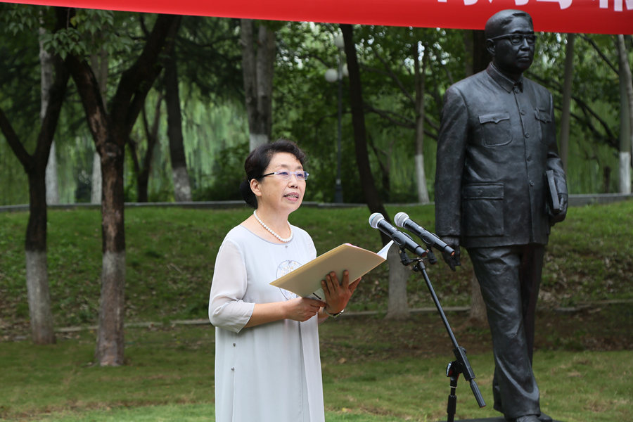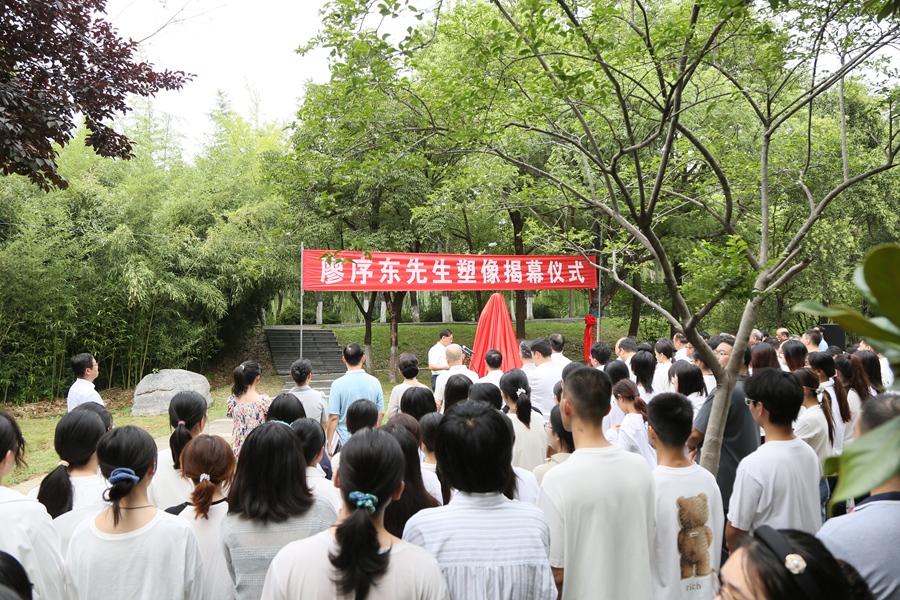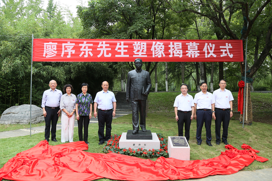 在大家共同見證下,親屬代表、校友代表、學(xué)校領(lǐng)導(dǎo)共同為廖序東先生塑像莊嚴(yán)揭幕。