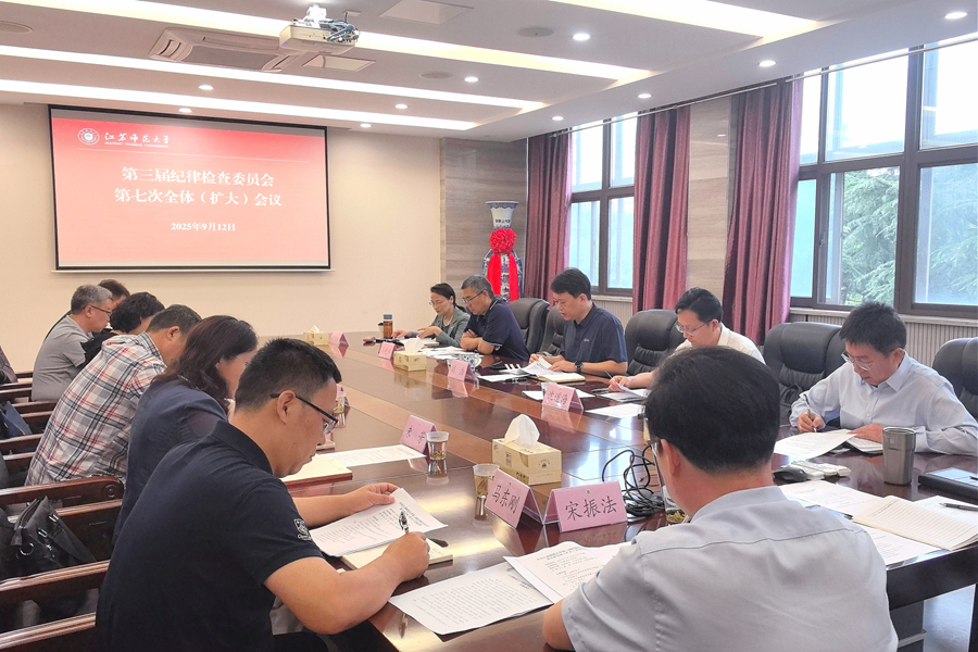 9月12日上午,中共江蘇師范大學(xué)第三屆紀(jì)律檢查委員會(huì)第七次全體(擴(kuò)大)會(huì)議召開(kāi)。校紀(jì)委書記、派駐監(jiān)察專員閭浩主持會(huì)議,全體紀(jì)委委員參加會(huì)議,紀(jì)委各處室負(fù)責(zé)人、科文學(xué)院紀(jì)委負(fù)責(zé)人列席會(huì)議。