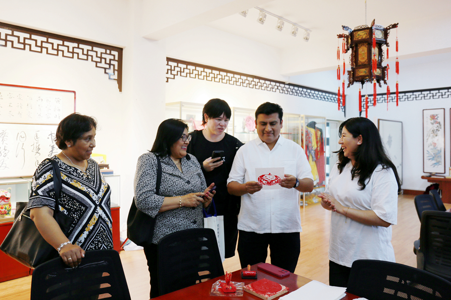 會前,代表團一行參觀了語言科學(xué)與藝術(shù)學(xué)院和國際學(xué)院,與語言科學(xué)與藝術(shù)學(xué)院學(xué)生和秘魯籍學(xué)生進行了親切交流。?