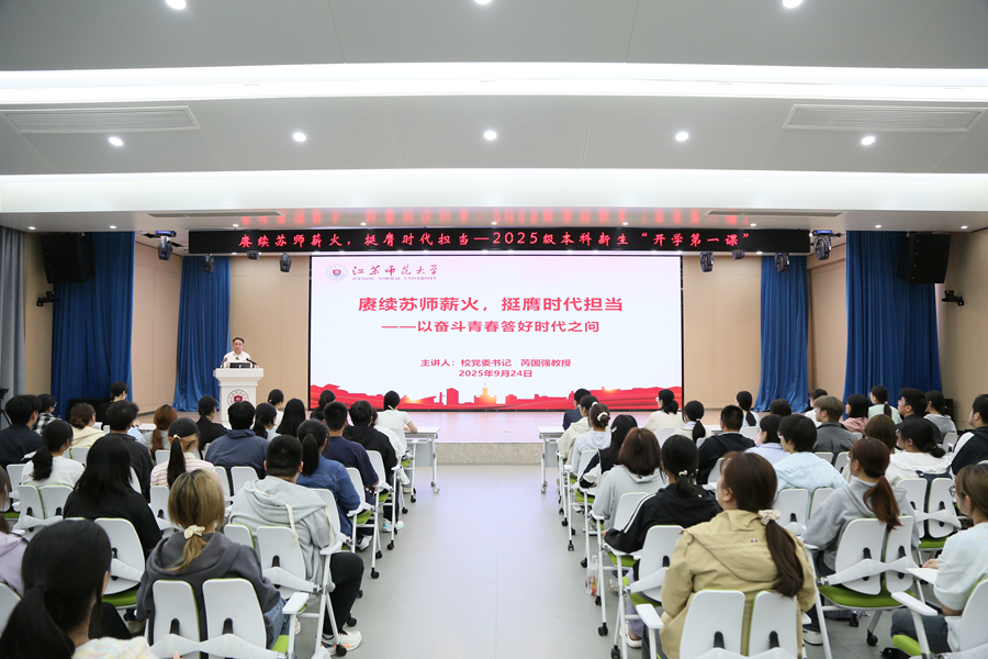 9月24日下午,校黨委書記芮國強以《賡續蘇師薪火,挺膺時代擔當——以奮斗青春答好時代之問》為題,為2025級本科新生講授“開學第一課”。