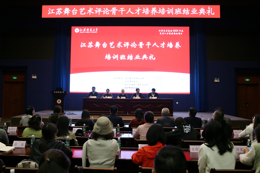 10月29日上午,江蘇藝術基金2025年度藝術人才培養資助項目——江蘇舞臺藝術評論骨干人才培養培訓班結業典禮在我校舉辦。江蘇省藝術評論學會會長、江蘇省文化與旅游廳原一級巡視員方標軍,我校校長杜增吉,江蘇省文化與旅游廳藝術處副處長毛小菁,昆山市文體廣電和旅游局副局長金磊等出席典禮。