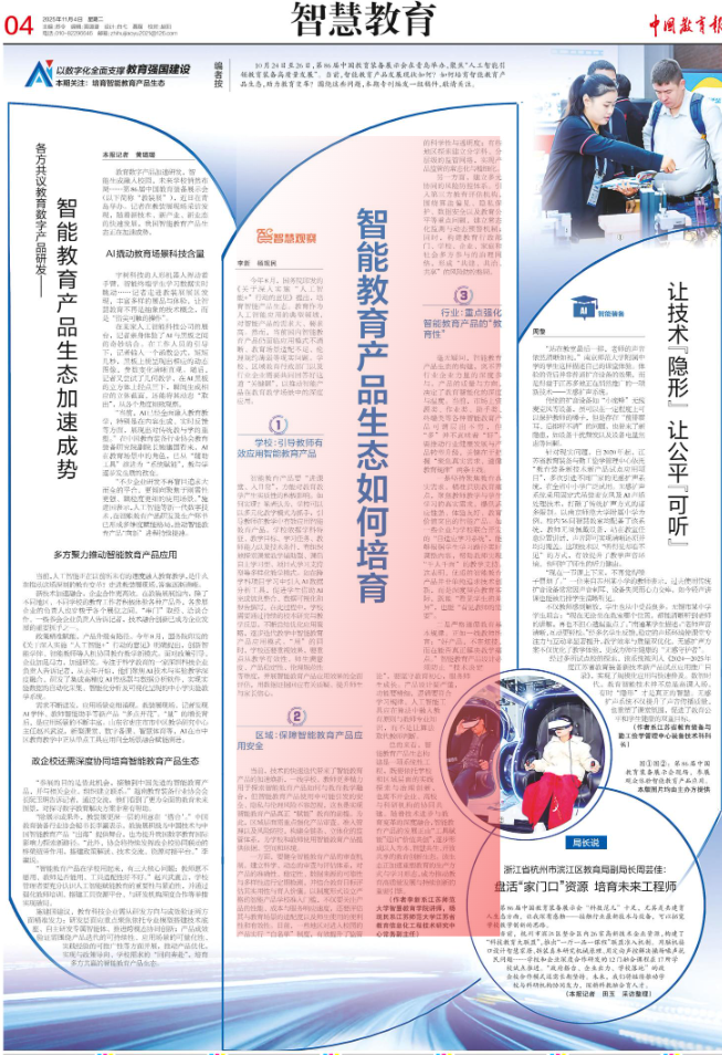 今年8月,國務院印發的《關于深入實施“人工智能+”行動的意見》提出,培育智能產品生態。教育作為人工智能應用的典型領域,對智能產品的需求大、要求高。然而,當前國內智能教育產品仍面臨應用模式不清晰、教育場景適配不足、倫理規約薄弱等現實問題。學校、區域教育行政部門以及行業企業需要共同回答好這道“關鍵題”,以推動智能產品在教育教學場景中的深度應用。