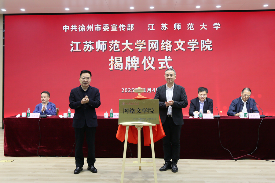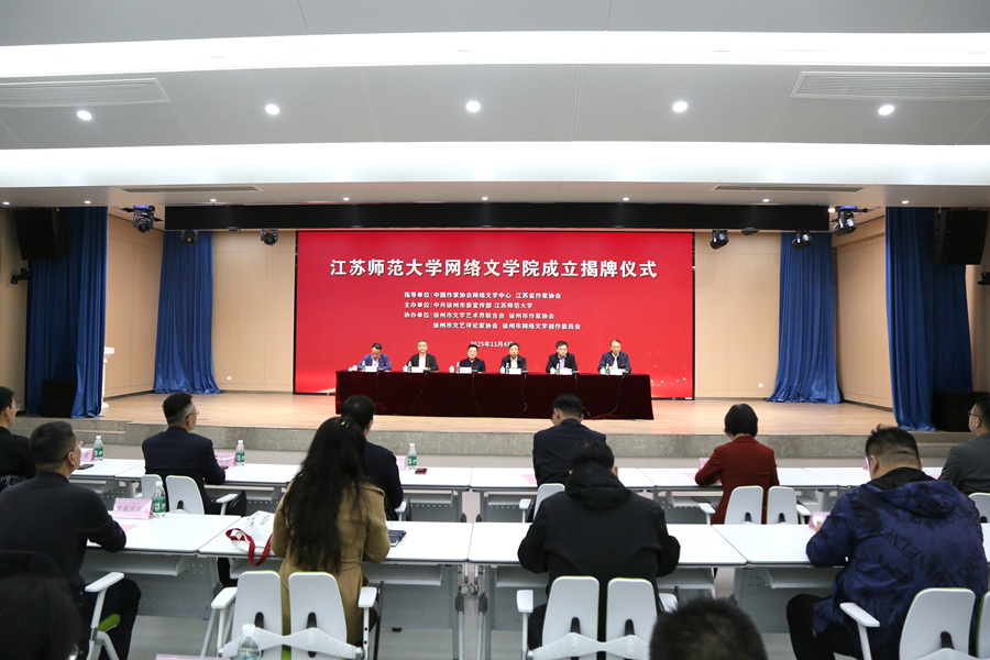 11月4日下午,江蘇師范大學(xué)網(wǎng)絡(luò)文學(xué)院揭牌成立。中國作家協(xié)會黨組成員、書記處書記胡邦勝,中國作家協(xié)會網(wǎng)絡(luò)文學(xué)中心主任何弘,江蘇省作家協(xié)會黨組書記、書記處第一書記鄭焱,徐州市委常委、宣傳部部長劉偉,我校黨委書記芮國強(qiáng)、副校長黃德志出席成立儀式。來自全國各地的學(xué)者、網(wǎng)絡(luò)作家及我校師生代表參加儀式。