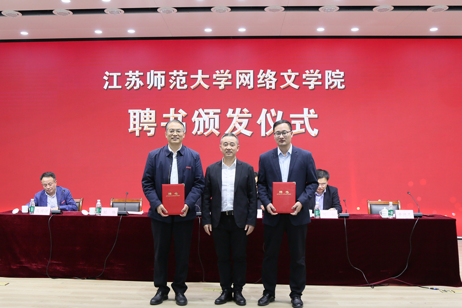 成立儀式上,校地雙方簽署共建協(xié)議,共同為“江蘇師范大學(xué)網(wǎng)絡(luò)文學(xué)院”揭牌。劉偉為網(wǎng)絡(luò)文學(xué)院院長黃德志、執(zhí)行院長溫德朝頒發(fā)聘書。