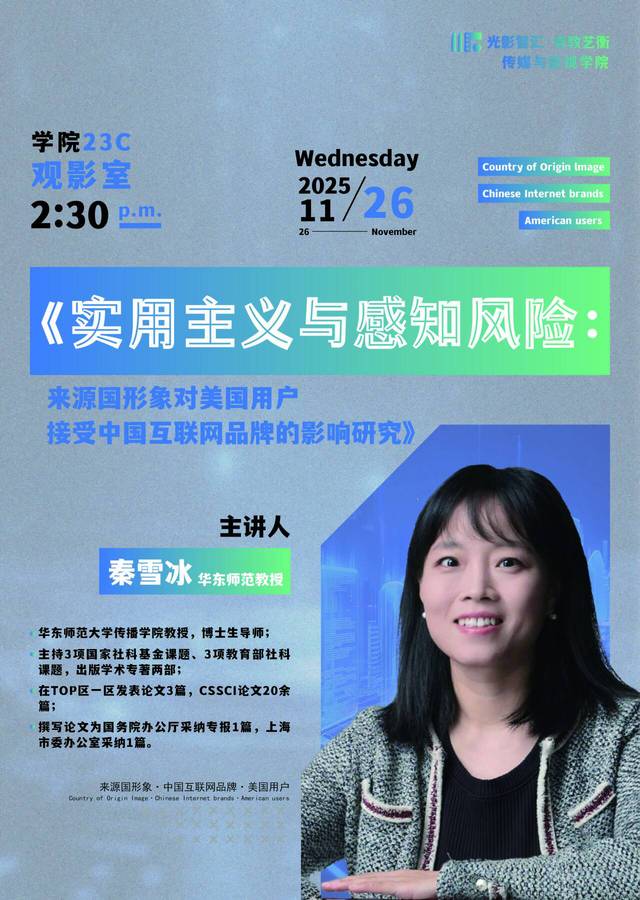 11月26日 秦雪冰教授學術講座(傳媒與影視學院)