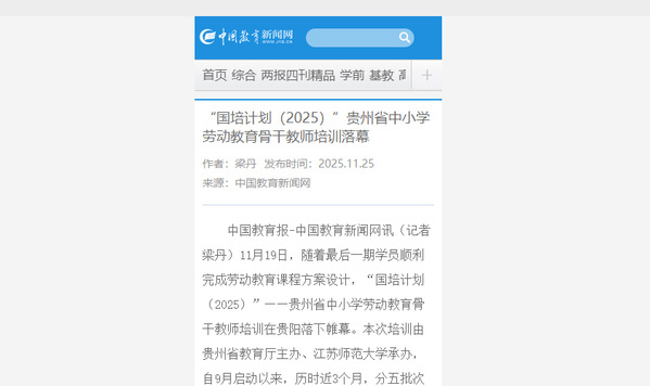 中國教育新聞網11月25日報道我校承辦“國培計劃(2025)”貴州省中小學勞動教育骨干教師培訓項目,內容如下: