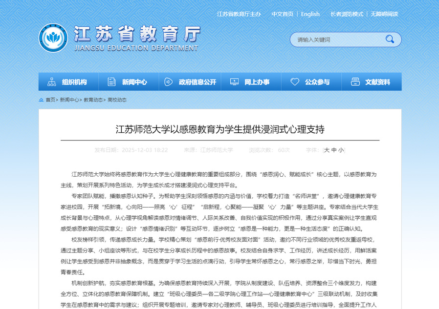 江蘇師范大學(xué)以感恩教育為學(xué)生提供浸潤(rùn)式心理支持