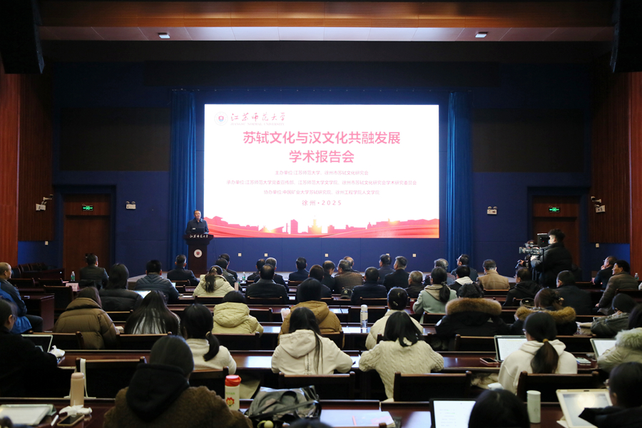 12月5日,“蘇軾文化與漢文化共融發展”學術研討會在我校舉辦。徐州市政協副主席邱成,校黨委常委、副校長黃德志出席會議并致辭,徐州市委宣傳部、徐州市蘇軾文化研究會等相關部門、社會組織負責人以及我校文學院150多位師生參加活動。研討會由徐州市蘇軾文化研究會顧問、江蘇師范大學文學院教授張仲謀主持。