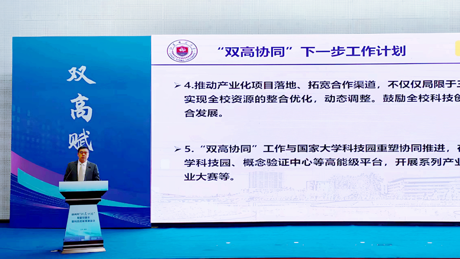 趙鵬在開幕式上介紹了我校“雙高協(xié)同”工作進(jìn)展與下一步規(guī)劃。他表示,學(xué)校將堅(jiān)持以產(chǎn)業(yè)需求為導(dǎo)向、以制度創(chuàng)新為支撐,圍繞“蹲點(diǎn)式”調(diào)研、激發(fā)創(chuàng)新活力、強(qiáng)化政策保障、整合全校資源等重點(diǎn)方向持續(xù)發(fā)力,全力推動(dòng)“雙高協(xié)同”工作取得實(shí)效,為校地融合與協(xié)同發(fā)展注入新動(dòng)能。