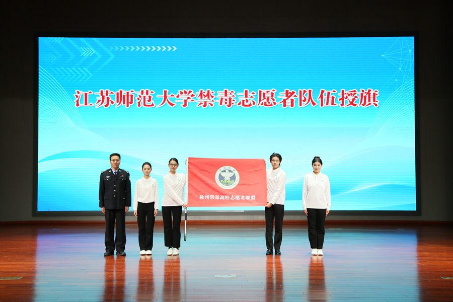 活動中,語言科學與藝術學院學生精心準備了精彩節目,《識毒揭真貌》《防毒明危害》《拒毒守己心》主題宣講、情景劇《禁毒薪火傳》以及朗誦《無毒中國說》贏得現場師生陣陣掌聲。活動還舉行了江蘇師范大學禁毒志愿者隊伍授旗儀式。