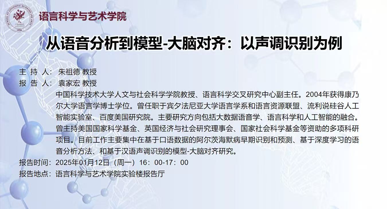 1月12日 袁家宏教授講座(語言科學與藝術學院)