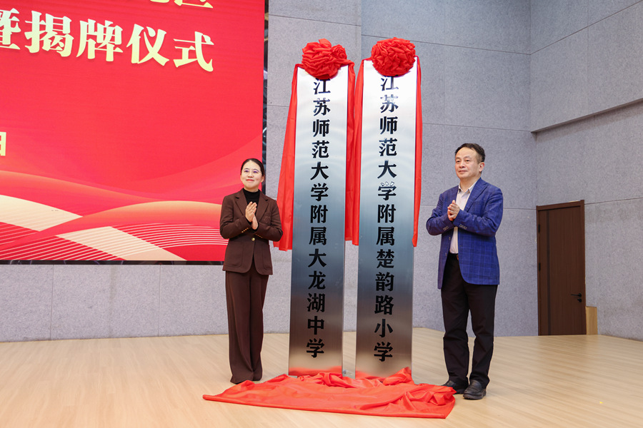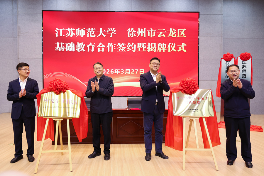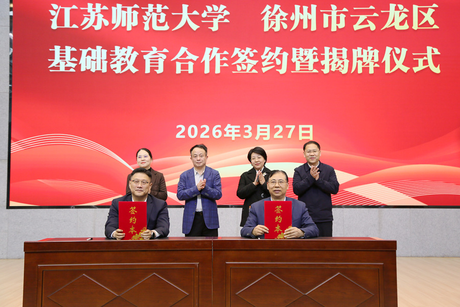 3月27日下午,我校與徐州市云龍區基礎教育合作簽約暨揭牌儀式在徐州市大龍湖中學舉行。云龍區委書記陳婕,云龍區委副書記、區長鄭偉,徐州市教育局黨委書記、局長孫云靜,徐州市體育局黨委書記、局長靖飛,我校黨委書記芮國強,校黨委副書記、校長杜增吉,校黨委常委、副校長黃德志出席活動,云龍區委區政府和我校有關部門負責同志、掛牌學校師生代表參加活動。云龍區委常委趙夫平主持簽約暨揭牌儀式。