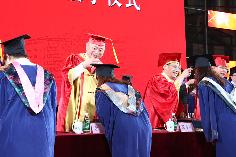 校領(lǐng)導(dǎo)為碩士畢業(yè)研究生撥穗