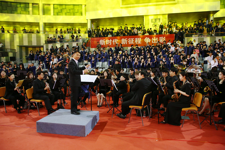 典禮正式開始前播放了視頻短片《北遷》《遠(yuǎn)航》,帶領(lǐng)研究生重溫師大歷史以及三年求學(xué)歲月的美好記憶。音樂學(xué)院研究生的快閃表演,歌聲清澈,朝氣蓬勃,展現(xiàn)了我校研究生陽光向上的精神面貌,將現(xiàn)場(chǎng)的氣氛烘托得活潑熱烈。