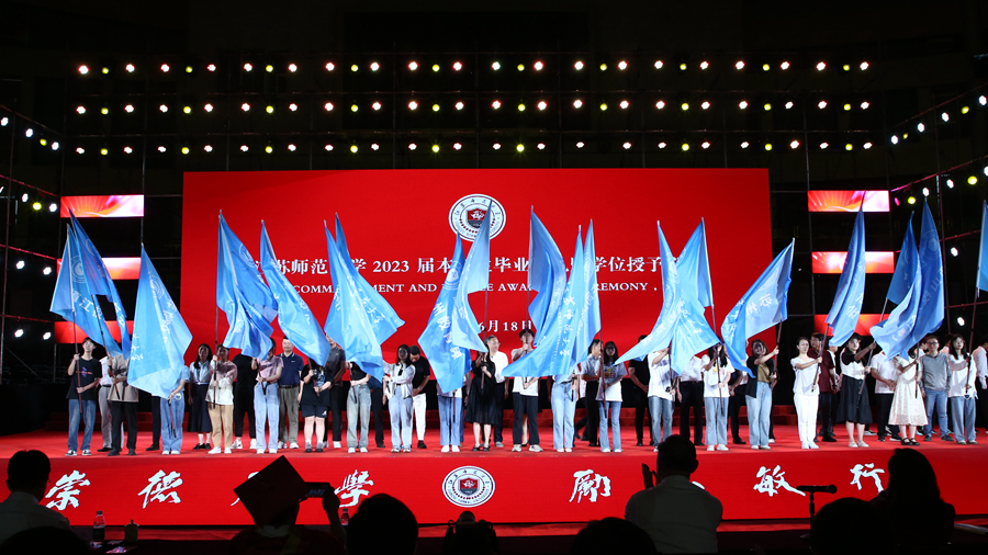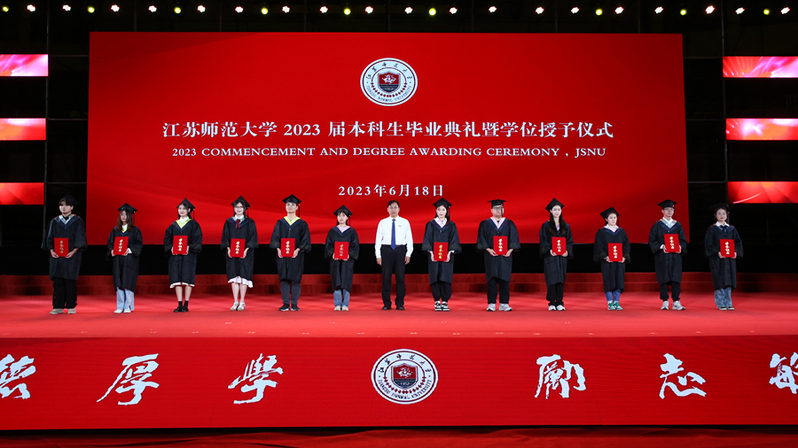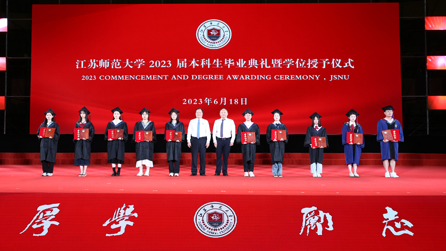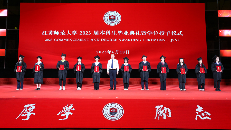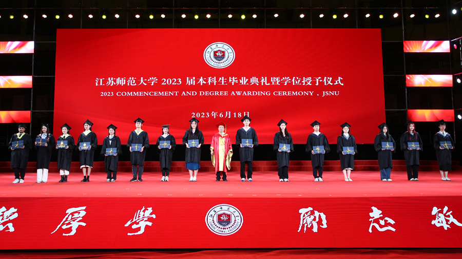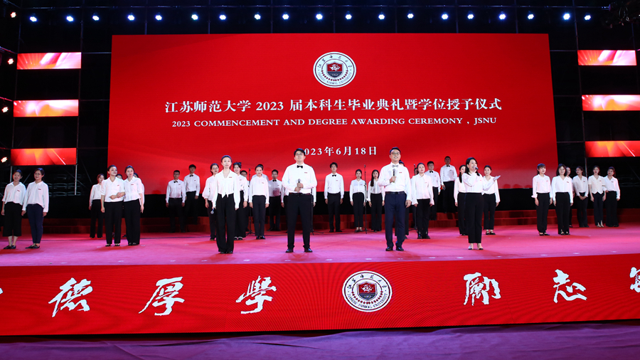 整場典禮在輔導(dǎo)員合唱團(tuán)演唱的《同桌的你》歌聲中落下帷幕,全體2023屆江蘇師大畢業(yè)生也帶著母校和校友們的殷切期盼,意氣風(fēng)發(fā)開啟新征程。