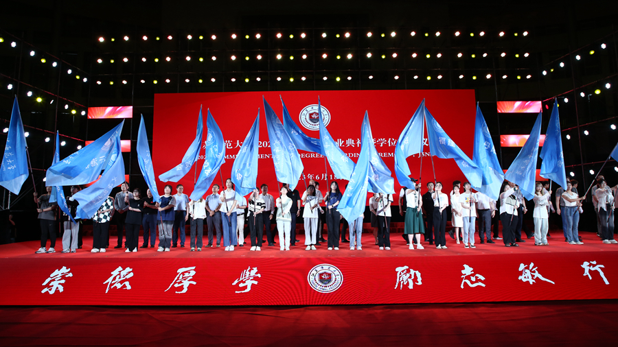 在師大的四年,他們勤奮學(xué)習(xí),不斷探索,用堅韌不拔、勇往直前的意志品質(zhì)繪制出屬于自己的美好藍(lán)圖。校學(xué)位評定委員會副主席、校黨委副書記、副校長劉廣登宣讀了《本科生學(xué)士學(xué)位授予決定》。校長周汝光為畢業(yè)生代表授予學(xué)位證書并撥穗。各學(xué)院黨政負(fù)責(zé)人代表全體畢業(yè)生接受了周汝光校長授予的畢業(yè)證書與學(xué)位證書。