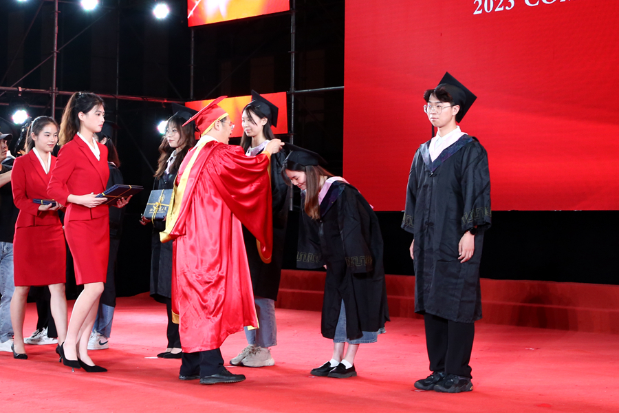 桃李芬芳結(jié)滿樹,莘莘學(xué)子赴前程。又是一年畢業(yè)季,我校2023屆本科畢業(yè)生圓滿完成學(xué)業(yè),即將離開母校奔赴新的征程。6月18日下午,學(xué)校隆重舉行2023屆本科生畢業(yè)典禮暨學(xué)位授予儀式。全體在徐校領(lǐng)導(dǎo),校學(xué)位評定委員會全體委員,校學(xué)生工作委員會全體委員,各學(xué)院院長、黨委副書記、專職輔導(dǎo)員、畢業(yè)班班主任、教師代表,各地校友會會長、秘書長、校友代表,2023屆本科畢業(yè)生,畢業(yè)生家長代表,2020、2021、2022屆本科畢業(yè)生代表共同參加了典禮。典禮分為三個篇章:《仲夏時?畢業(yè)季》《凌云志?勇?lián)?zé)》《致青春?夢遠(yuǎn)航》。