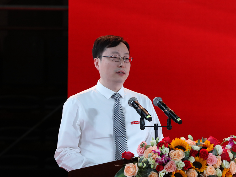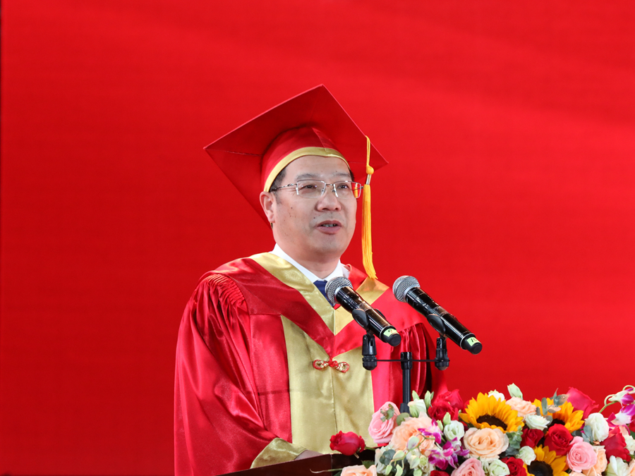 校學(xué)位評定委員會主席、校長周汝光在典禮上致辭,代表全校師生員工,向圓滿完成學(xué)業(yè)的畢業(yè)生同學(xué)表示熱烈祝賀,向精心培育、關(guān)心支持畢業(yè)生成長的家長和老師致以衷心感謝和崇高敬意,向過去幾年因疫情原因未能參加畢業(yè)典禮的往屆畢業(yè)生代表表示熱烈歡迎。周汝光在致辭中帶領(lǐng)全體畢業(yè)生同學(xué)回顧了四年求學(xué)之路的點點滴滴和江蘇師大這四年取得的發(fā)展成就。他指出,大學(xué)畢業(yè)是人生下一個征途的開始,希望同學(xué)們作為母校最閃亮的名片,永遠(yuǎn)秉持“崇德厚學(xué),勵志敏行”的校訓(xùn),用智慧奉獻(xiàn)社會,用美德影響他人,以奮發(fā)的精神狀態(tài)和優(yōu)異的工作業(yè)績,講好師大故事,傳播師大聲音,為母校增光添彩。周汝光勉勵同學(xué)們,要篤學(xué)不怠,永葆求索之心;要知行合一,砥礪奮斗之志;要堅守初心,厚植愛國之情。他希望同學(xué)們在祖國波瀾壯闊的現(xiàn)代化建設(shè)進(jìn)程中,踐行報國之志,貢獻(xiàn)青春力量。