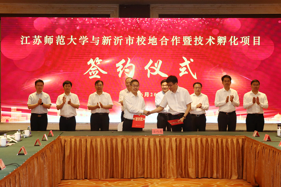 6月20日下午,我校與新沂市校地合作暨技術孵化項目簽約儀式在新沂市舉行。我校黨委書記方忠,副校長杜增吉、董曉臣,新沂市委書記陳堂清,市長李勝出席活動。校地雙方相關領導和各有關部門主要負責同志,以及企業界代表參加活動。