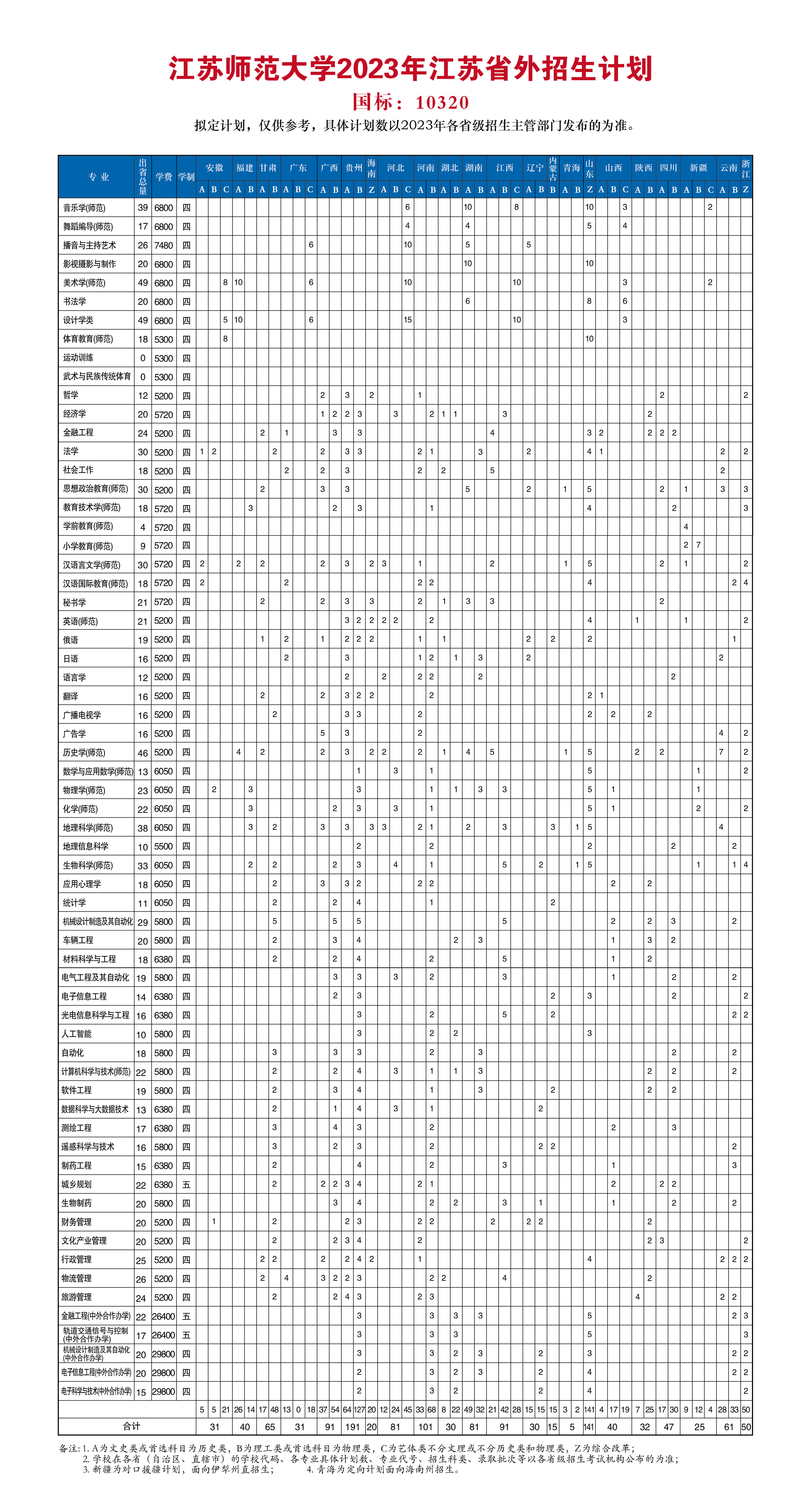 江蘇師范大學(xué)2023年江蘇省外招生計劃