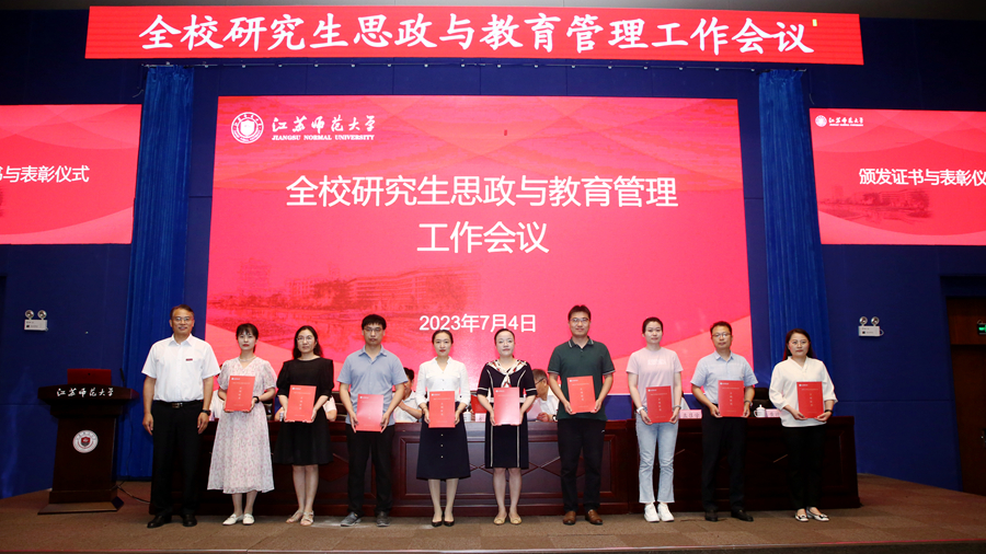 會上,黨委研究生工作部匯報了研究生思政與教育管理工作,回顧總結近年來工作取得的成績、面臨的主要問題,提出了未來工作的思路與設想。智慧教育學院、歷史文化與旅游學院有關同志就學院層面研究生思政與教育管理工作的思路、舉措、創新、特色進行交流發言。會議對2023年研究生就業促進項目立項、承辦2023年“中國研究生創新實踐系列大賽”校內立項和第二屆江蘇省社會實踐和志愿服務“十佳研究生”“十佳研究生團隊”進行了表彰。