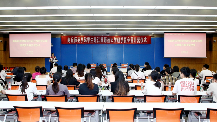 為持續(xù)推動教育部師范教育協(xié)同提質(zhì)計劃的落實,助力師范教育高質(zhì)量發(fā)展,7月13日,商丘師范學(xué)院教務(wù)處副處長崔偉峰、數(shù)學(xué)與統(tǒng)計學(xué)院副院長劉磊、法學(xué)院副院長朱艷、教師教育學(xué)院副院長李戰(zhàn)營、人文學(xué)院漢語言文學(xué)系主任劉萬華、教務(wù)處實踐教學(xué)科科長胡春華及選派的43名本科生赴我校開展研學(xué)夏令營活動。我校研究生院、文學(xué)院、物理與電子工程學(xué)院、化學(xué)與材料科學(xué)學(xué)院、生命科學(xué)、美術(shù)學(xué)院等單位有關(guān)同志出席研學(xué)夏令營開營儀式。