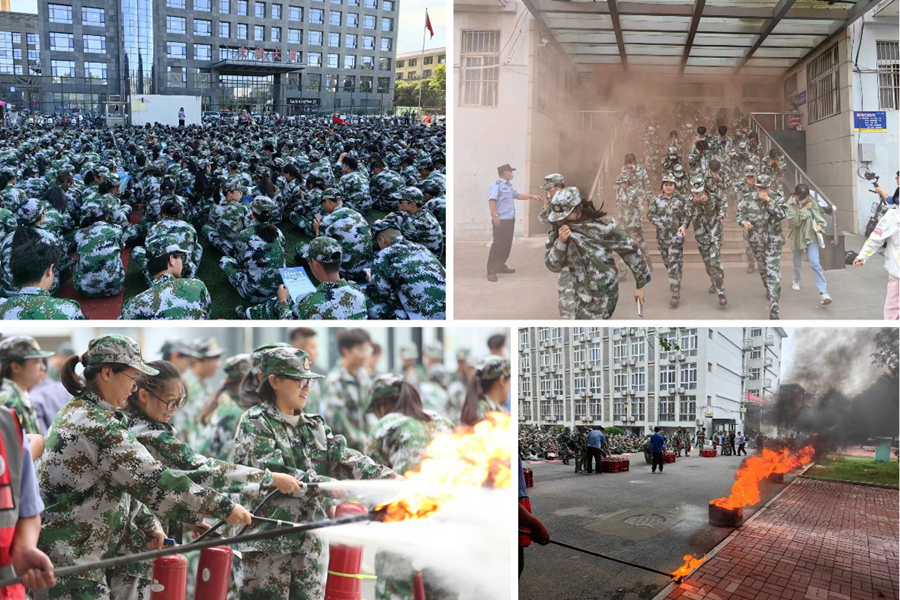 第二階段校內(nèi)技能操練中,學(xué)校邀請(qǐng)徐州醫(yī)科大學(xué)師生開(kāi)展心肺復(fù)蘇應(yīng)急救護(hù)培訓(xùn),武裝部、保衛(wèi)處聯(lián)合組織消防疏散演練、消防滅火演練;邀請(qǐng)屬地公安民警進(jìn)行反詐宣傳,學(xué)工部與武裝部聯(lián)合開(kāi)展“紅歌嘹亮”拉歌大賽、軍訓(xùn)攝影比賽;與公寓中心聯(lián)合開(kāi)展內(nèi)務(wù)檢查評(píng)比,檢驗(yàn)軍訓(xùn)內(nèi)務(wù)訓(xùn)練成果。校醫(yī)院全程為軍訓(xùn)工作開(kāi)展提供醫(yī)療保障。科文學(xué)院還組織潘安湖校區(qū)新生進(jìn)行了校外拉練。