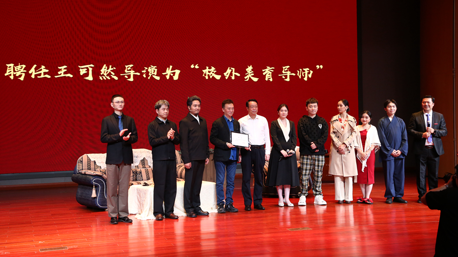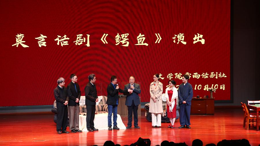 10日下午,在馬可音樂廳舉辦了新時代文學論壇暨第52期“潤德講堂”:莫言報告會。在報告會第一階段“青春劇場”單元,學生社團文學院雷雨劇社表演了話劇《鱷魚》選段,受到莫言、央華戲劇藝術總監(jiān)王可然等專家的肯定和鼓勵。副校長張玉勤為王可然老師頒發(fā)了“校外美育導師”聘書。