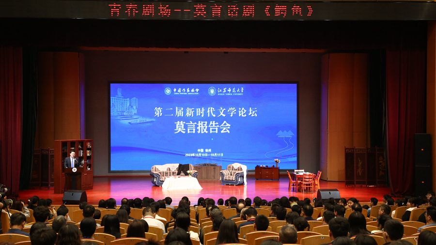 10月10日上午,論壇開幕式在分析測試中心300會議室舉行。中國作家協(xié)會黨組成員、副主席、書記處書記吳義勤,中國作家協(xié)會副主席、諾貝爾文學獎獲得者莫言,江蘇省作協(xié)黨組書記、書記處第一書記鄭焱,徐州市政協(xié)主席王強,茅盾文學獎獲得者、《人民文學》副主編徐則臣,我校黨委書記方忠,以及徐州市文聯(lián)有關領導和來自全國各地的50余位文學評論家、導演、編劇、期刊和出版界嘉賓、新聞媒體記者出席開幕式,宣傳部、教務部、人文社會科學研究院等校相關職能部門負責人、文學院師生代表參加。儀式由副校長張玉勤主持。