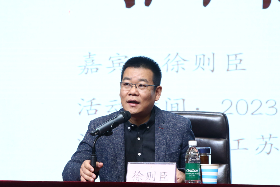 活動伊始,文學院郝敬波教授代表學校對徐則臣老師的到來表示熱烈的歡迎,并向同學們通報了學校“徐則臣研究中心”揭牌成立的喜訊。徐則臣老師對江蘇師范大學的精心安排表示感謝,并表達了自己成為一名江蘇師大人的感受。在講到自己的文學情緣時,徐則臣老師深情回憶,兒時夢想成為一名卡車司機后因一部電視劇又想成為一名律師,直至閱讀了《家族》后,才立志成為一名作家。徐則臣老師認為,在某一領域取得成功的都是愿意堅持的人,他用27年堅持寫作,花費2年專門訓練如何編好故事,生動詮釋了“成就事業的關鍵是毅力”這一觀點。在談到作家筆下的故鄉與童年書寫時,徐則臣老師說,對一個作家而言,故鄉是空間意義上的童年,童年是時間意義上的故鄉,重要的不是故事講述的時代,而是講述故事的時代。徐則臣老師指出,文學是一個不斷淘汰的過程,文學創作要與時俱進,要想讀懂一個作家,既要讀他最好的書,也要讀他最差的書,去體會他們的成長歷程,去感悟他們的靈感來源,更要去走到他們的身邊,這樣才能在文學作品與作者之間建立一座橋梁,通向社會,通往時代。此外,徐老師還寄語同學們,視野決定高度,希望大家要做一直奔跑的人。