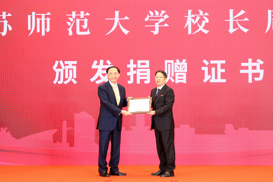 隨后,林高演代表香港智華基金正式向我校捐贈人民幣3000萬元,校長周汝光代表學(xué)校接受捐贈。捐贈儀式上,周汝光向香港智華基金頒發(fā)捐贈證書、向林高演先生頒發(fā)江蘇師范大學(xué)榮譽教授聘書,向香港智華基金有限公司顧問潘旭波先生頒發(fā)江蘇師范大學(xué)教育發(fā)展基金會榮譽理事聘書。