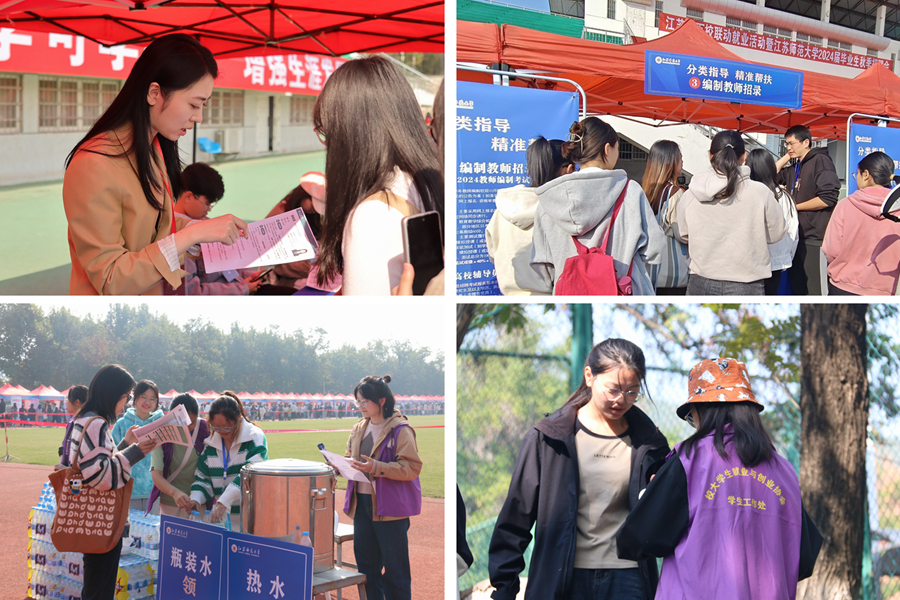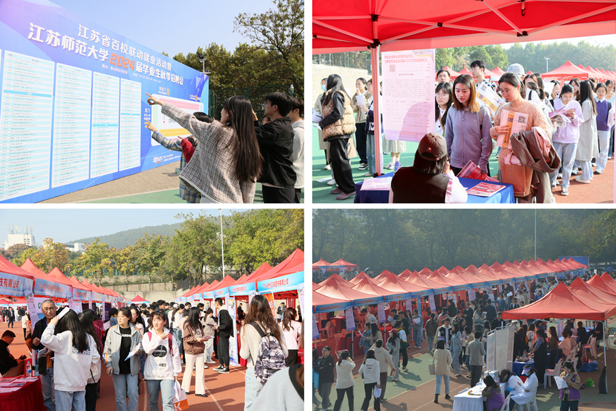10月22日上午,江蘇省百校聯動就業活動暨江蘇師范大學2024屆畢業生秋季招聘會在泉山校區田徑場舉辦,校黨委常委、副校長張玉勤,學生工作處負責同志,各學院黨委副書記、就業輔導員及7200余名學生參加活動。