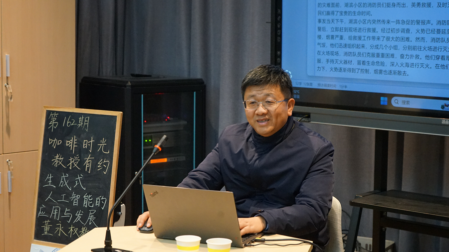 12月6日,第162期“咖啡時光·教授有約”活動在泉山校區(qū)“六點匯”實踐基地舉行。智慧教育學院院長董永權教授就“生成式人工智能的應用與發(fā)展”這一主題與在場同學進行交流。