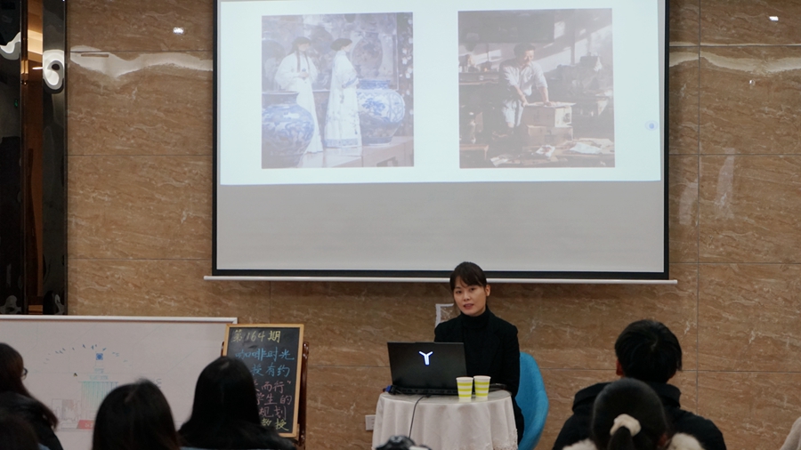 蘭芳從“美”的定義開始本次講座,通過AI繪制的圖片讓同學(xué)們感悟美的通用性,以此鼓勵同學(xué)們?nèi)フJ(rèn)識美、欣賞美。蘭芳認(rèn)為人類社會發(fā)展的進(jìn)步也推動美的進(jìn)步,讓美的生成更簡潔化。她根據(jù)一組文創(chuàng)圖片讓同學(xué)們意識到,美應(yīng)用在實用的日常用品上時還能推廣民族文化。她提議當(dāng)代大學(xué)生要有敏銳的眼光,去發(fā)現(xiàn)美的人和事,要熱愛環(huán)境、熱愛專業(yè)。隨后,蘭芳讓同學(xué)們欣賞了從不同視角拍攝的獨屬于師大校園的美,帶領(lǐng)同學(xué)們認(rèn)識生活中具有經(jīng)典性的美,結(jié)合徐州漢文化城市IP卡通形象和一些文創(chuàng)作品,與同學(xué)們一起探索藝術(shù)美。最后,蘭芳就一位同學(xué)的學(xué)業(yè)規(guī)劃,結(jié)合自己的大學(xué)生涯,解釋王國維《人間詞話》里的最經(jīng)典的三句話,以此啟示同學(xué)們,發(fā)現(xiàn)美不難,執(zhí)行、轉(zhuǎn)化成藝術(shù)更難;我們的社會發(fā)展離不開美,有了我們對美的發(fā)現(xiàn),我們的生活才更加美好。