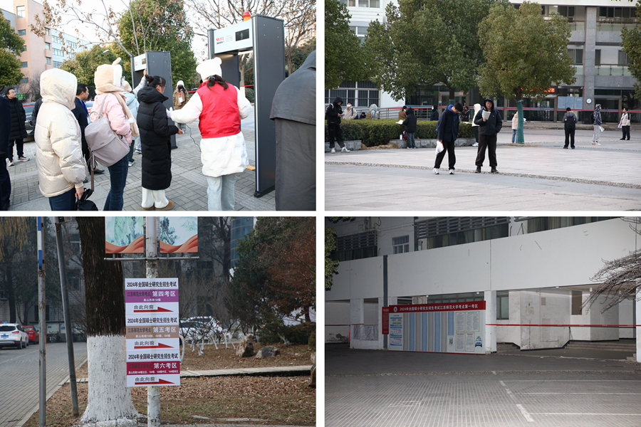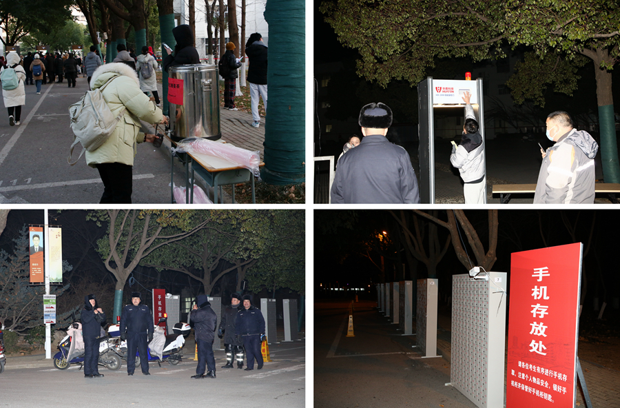 學校堅持考生為本、考生至上,科學規劃考生進出考點路線,通過官方網站、微信公眾號等途徑發布了考點考前公告,涉及入校提醒、交通提醒、就餐提醒等,并通過研招網給每個考生發送有關安檢、手機管理等提醒。通過繪制校園卡通示意圖、制作考場查詢二維碼、張貼校園指示牌、提前一天下午開放校園等方式幫助考生提前熟悉考點情況。為方便廣大考生順利應考,考試前,我校組織志愿者進行智能安檢門安全檢查、存放手機等模擬演練,校領導帶隊觀摩手機集中存放、智能安檢門檢查等新增環節的實施流程,并對安檢方案持續優化提出建議。