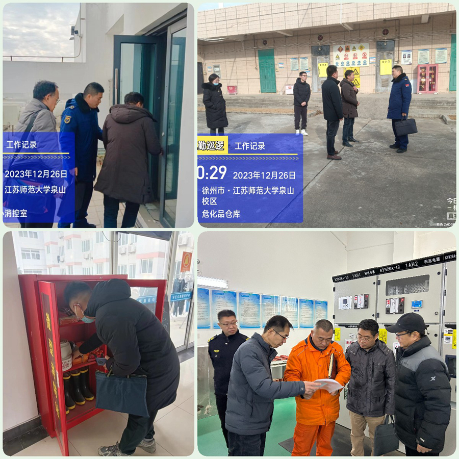 按照省、市統一部署,12月26日上午,以徐州市教育局副局長徐志為組長的市消防安全標準化管理達標建設驗收檢查組一行8人蒞臨我校檢查指導消防安全工作。校黨委常委、副校長張其飛出席匯報會,校長辦公室、研究生院、學生工作處、實驗室與設備管理處、后勤管理處、基建處、后勤集團、保衛處等單位負責同志陪同檢查。