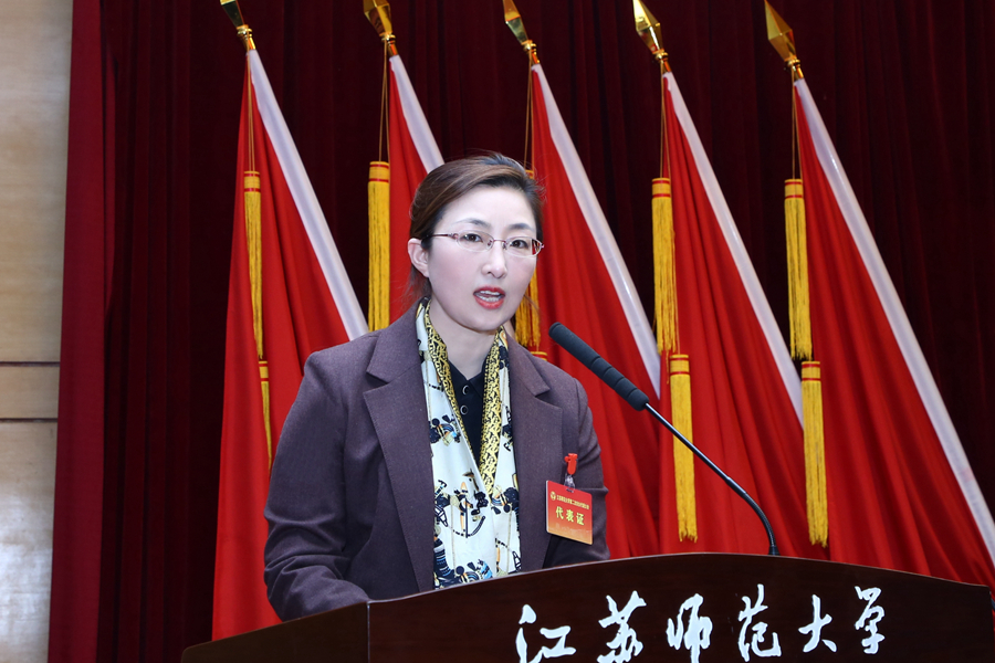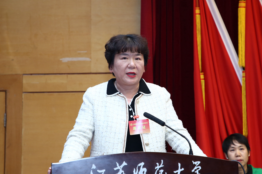 沈梅代表江蘇省婦聯向大會召開表示熱烈祝賀,向關心支持婦女工作的學校領導表示衷心感謝,向江蘇師大全體代表和女性師生致以誠摯問候。沈梅指出,做好新時代高校婦女工作,首先要堅持黨的領導,在學思踐悟中筑牢巾幗之魂;要勇擔時代使命,在服務大局中勇建巾幗之功;要發揮獨特作用,在修身齊家中展現巾幗之美;要加強改革創新,在聯系發展中凝聚巾幗之力。希望師大婦聯努力建設成為新時代的創新婦聯、智慧婦聯、開放婦聯、暖心婦聯、嚴實婦聯,為全省高校婦女事業高質量發展注入活力、探索新路,提供示范樣本。