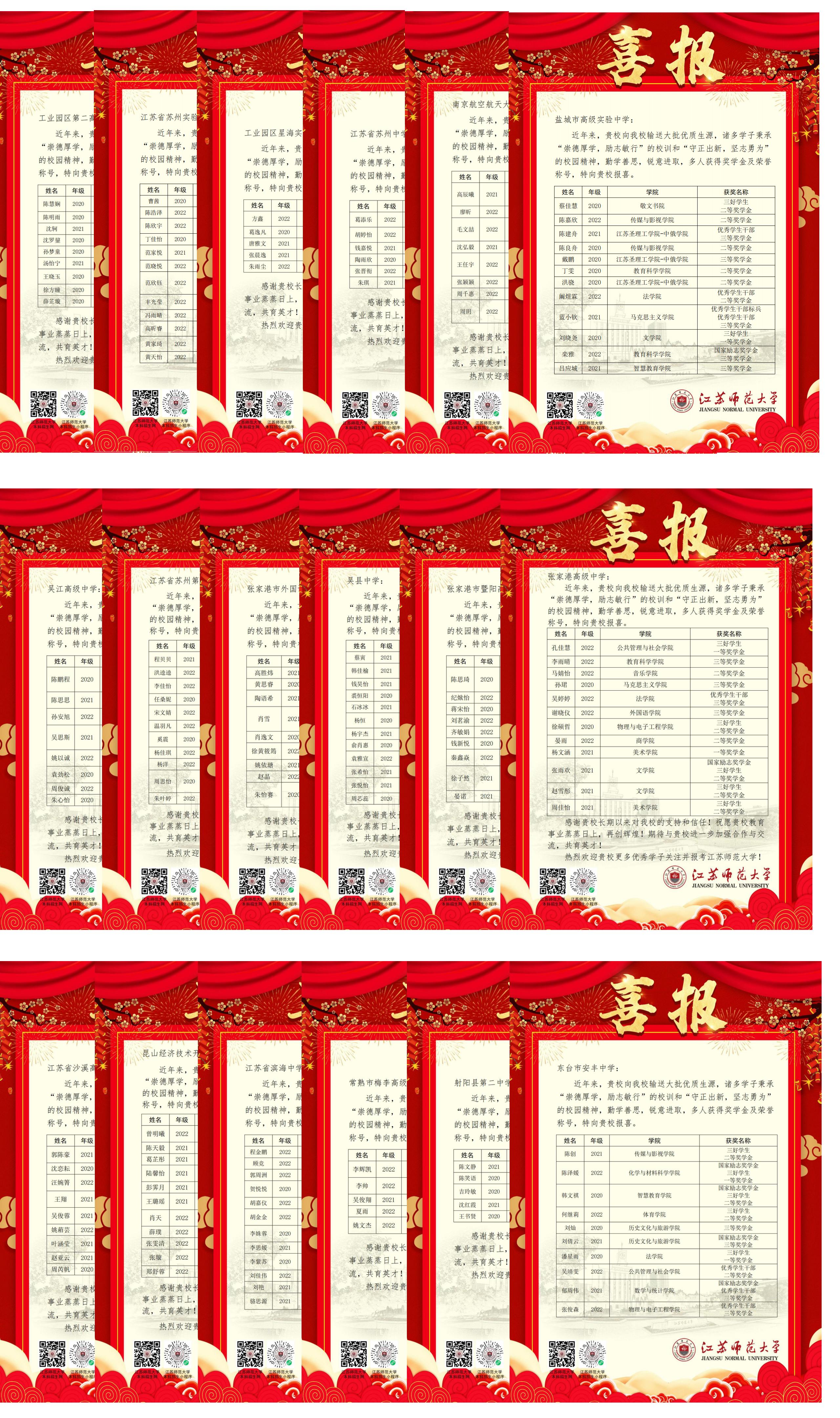 為感謝各中學為我校輸送優質生源,以及鼓勵更多優質生源報考我校,近日,校本科招生辦對我校2022-2023學年獲得校級及以上三好學生、優秀學生干部、獎學金的本科學生名單進行了整理,并以喜報的形式陸續發送給各自畢業中學。目前已發送完第一批喜報,共涉及蘇州、鹽城等多個市50所中學,得到了中學的熱烈回應,產生了積極的社會反響。