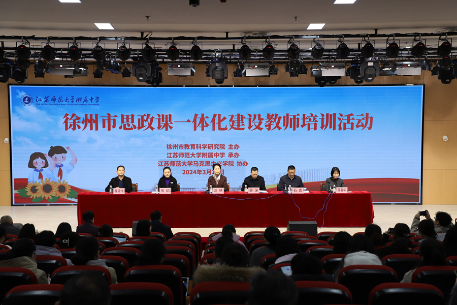 為協同推進大中小學思政課一體化建設,提升思政課教師的專業素養和課堂教學質量,3月18日,江蘇師范大學馬克思主義學院與徐州市教育科學研究院、江蘇師范大學附屬中學共同舉辦徐州市思政課一體化建設教師培訓活動。市委教育工委副書記劉艷,我校馬克思主義學院黨委書記薛深,市教科院副院長程廷偉,江蘇師范大學附屬中學黨委書記張焰、校長石鑫出席了培訓活動。市直屬學校、各縣區教研員、思政課骨干教師及我校馬克思主義學院師生等300人參加了此次活動。活動在江蘇師范大學附屬中學報告廳舉行。