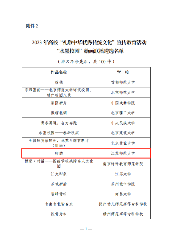近日,教育部公布了2023年高校“禮敬中華優秀傳統文化”宣傳教育活動評選結果,我校選送的關工委作品《半生戎馬百歲崢嶸 桃李天下為家國》獲選“紅色家園”視頻展覽遴選名單,美術學院作品《師韻》獲選“水墨校園”繪畫聯播遴選名單。