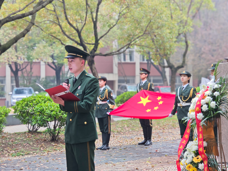 紅色校史固本,賡續血脈砥礪前行。黨委學生工作部、黨委人民武裝部立足學校紅色文化傳統,深入挖掘校園內紅色故事,在首任校長劉先勝中將雕像前,組織校內學生干部代表、退役士兵、國旗班同學代表開展拜謁活動,在歷史傳承中培根鑄魂,感悟紅色精神,汲取紅色力量,弘揚崇尚英雄、學習英雄、爭當英雄的革命精神。